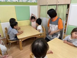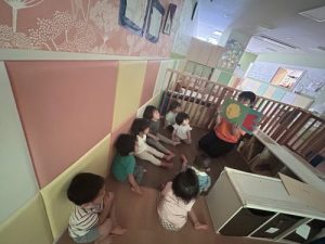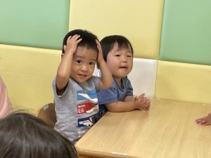 いちご組さんは紙芝居、りんご組さんはお昼寝の絵本読みましたよ