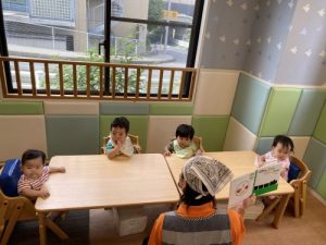 朝の会ではサンドイッチの絵本を読みました。