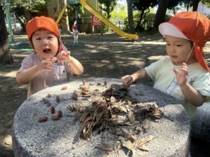 毎年、どんぐりや松ぼっくりをたくさん実らせる、子どもたちにとっては夢のような公園です![]()