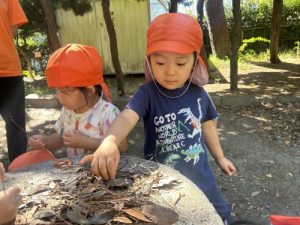 「せんせい!みて!ダンゴムシ見つけたよ👀❗️」