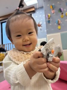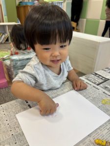 もも組さんは、クレヨンを握ってお絵描きかな❓