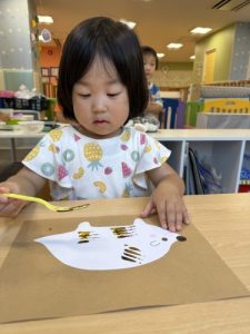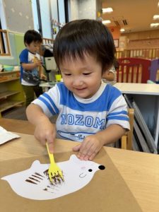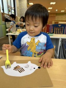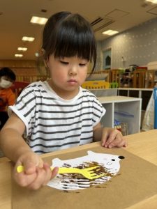 フォークの模様を使って、ハリネズミ作りに夢中でした🌟