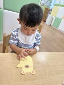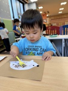 お部屋の中では、秋の製作をしているクラスが多くありました。