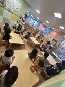 朝の会で、どうぶつサーカスはじまるよという賑やかな絵本を読みました。