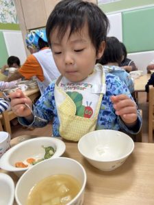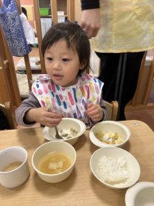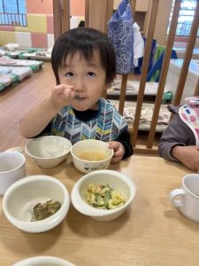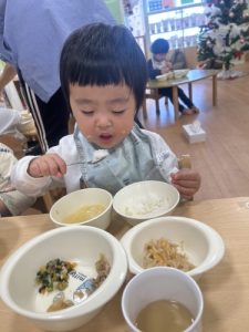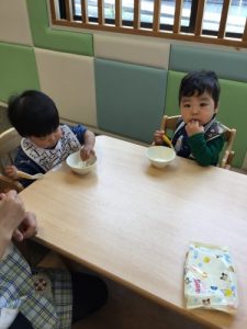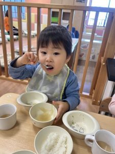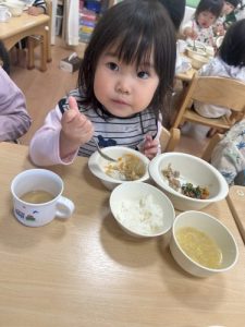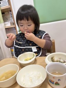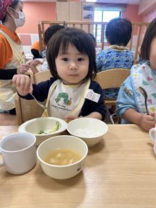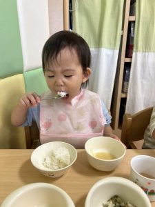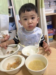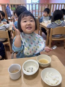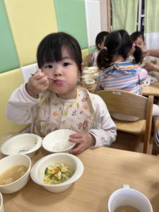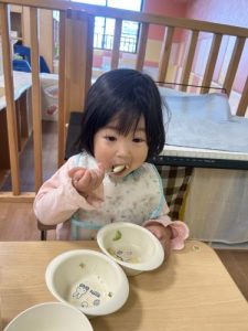 もうすっかり園に慣れ、今ではおかわりをするくらいたくさん食べてくれますよ![]()