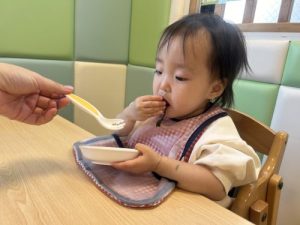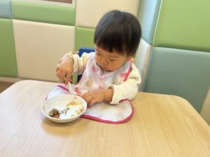 だんだんと上手に食べられるようになってきましたよ❗️