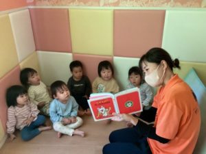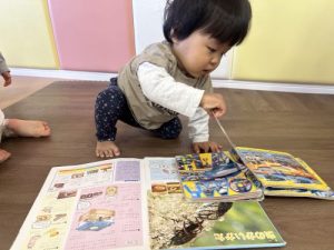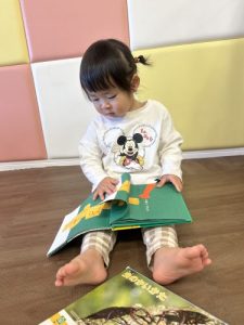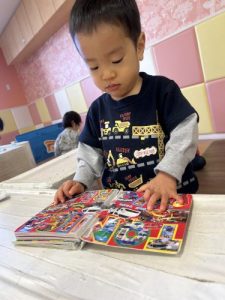 保育園に来てすぐ、絵本を開く子どもたち![]()