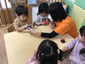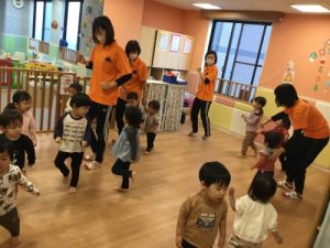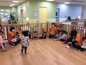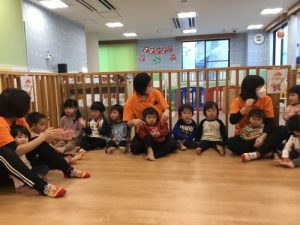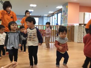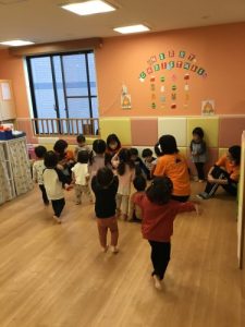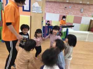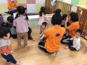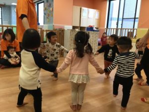 リトミックは「はじまるよ、はじまるよ」のお歌から始まります。