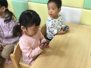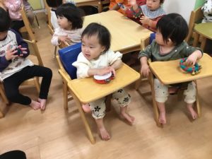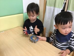 子どもたちのリクエストを聞きながら、色々なお歌に合わせて楽器を鳴らしました![]()