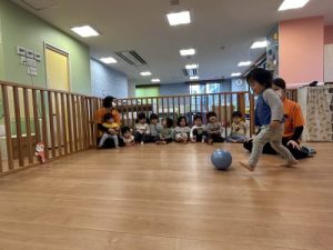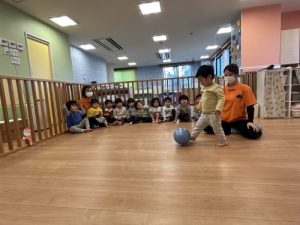 好きな方の足で、「ぽーーーん」とボールを蹴ってみよう⚽️