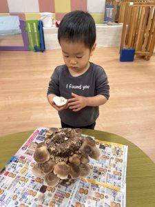 りんご組さんが、毎日丁寧にお世話をしてくれたおかげで、立派なきのこがたくさん実りました❗️🍄