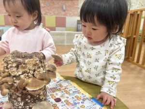 、、というわけで、いちご組さんともも組さんに椎茸収穫をお願いしました![]()