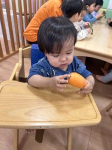 保護者の方から、新鮮な人参とブロッコリーをいただきました☆