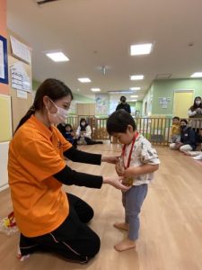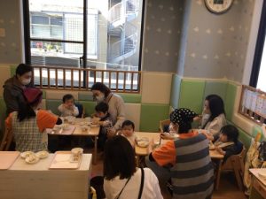 今週は0歳児もも組と、2歳児りんご組の保育参観がありました。
