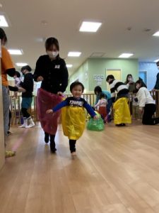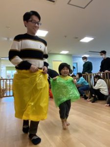 親子で大きなパンツを履き、お部屋の中をよーいどん❗️❗️
