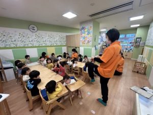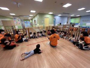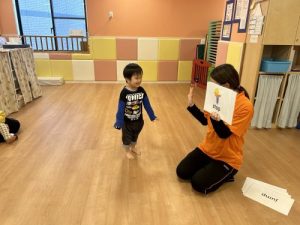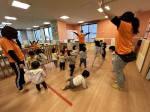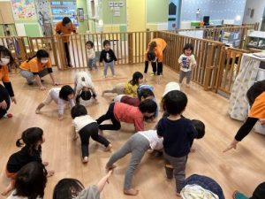 「できるかな❓」の英語verで、体を動かす日もあります。