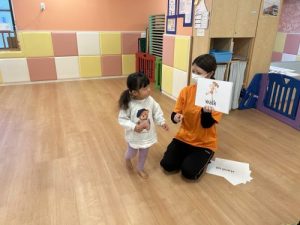 「walk」のカードでは先生の周りを歩いてくれました👟