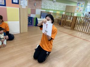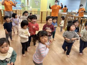 「stand up,Sit down」の歌に合わせて体を動かしました。
