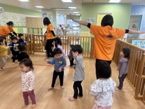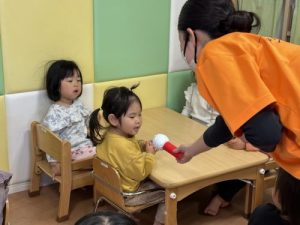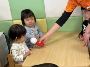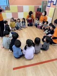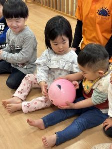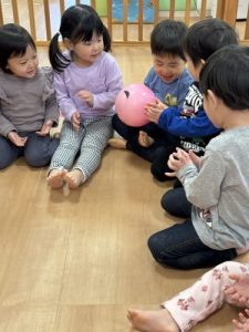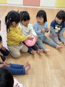 好きな歌を歌いながら隣のお友達にボールを渡していき、一周出来たら成功です🌟
