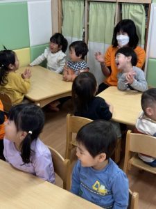 今月のお歌は「手をたたきましょう」です。