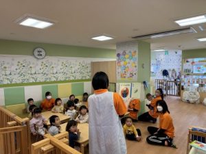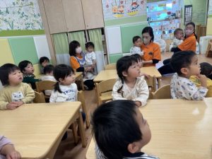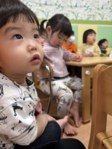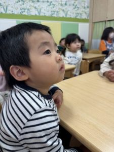 朝の会の絵本が始まると途端に静かになりジッと絵本に目を向けてくれていました