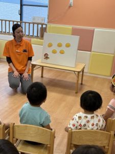 保育者からのプレゼントは「パン屋に5つのメロンパン」のパネルシアターです。