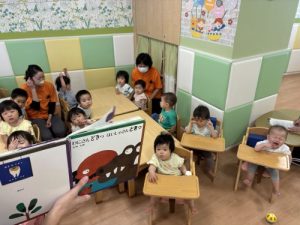 歯科検診ということで歯医者さんが登場する絵本を読みました。