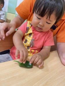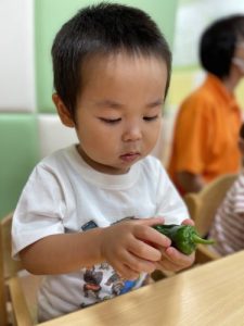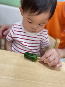 ピーマンはどれかな?と絵本を見てまずは観察!!