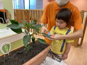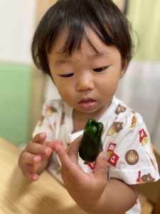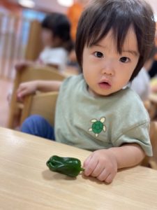 園で育てたピーマンが大きくなったので収穫をしました🫑