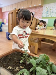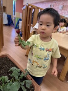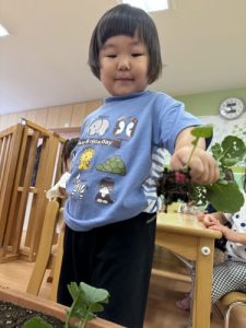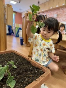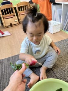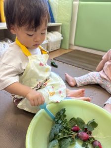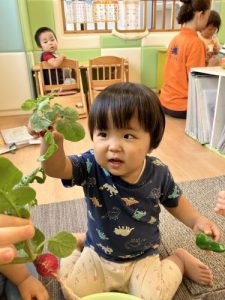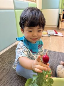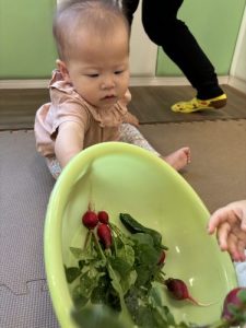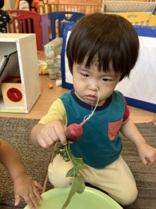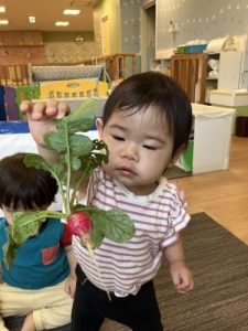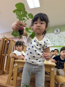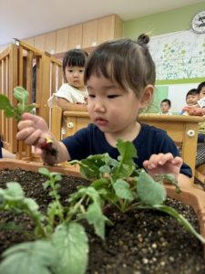 ラディッシュを抜く練習です!「うんとこしょ!どっこいしょ!💦」