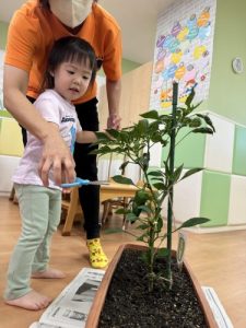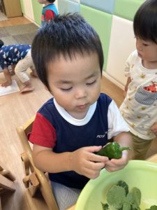 葉っぱはチクチク、ピーマンは不思議な香り、、、