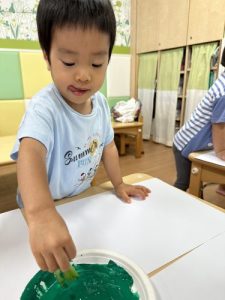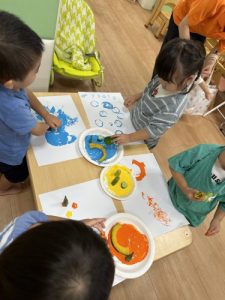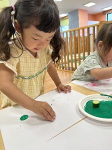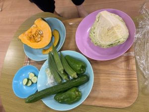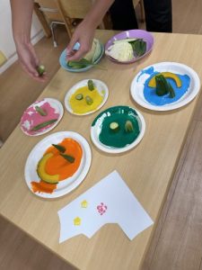 野菜の面白い様々な形を使って野菜スタンプをしました🥕🥦