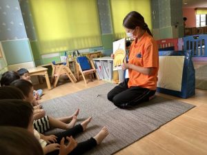寝る前の絵本の様子です。何を読んでいるのかな??