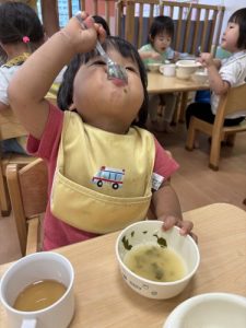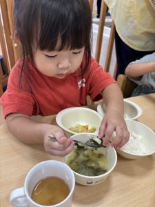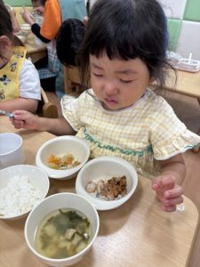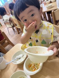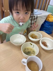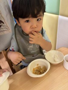 苦手なお野菜も「見ててねー!」とみんなに応援されながら完食しました✨