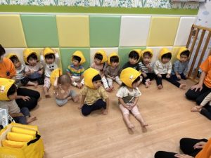 保育者の「地震だー‼️」の声にすぐに反応して…
