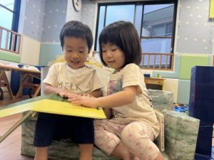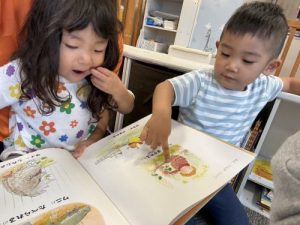 お友達や保育者と一緒に読み合いを楽しんでいます🎵