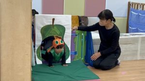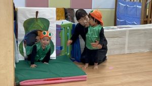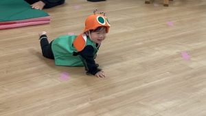 歌の歌詞に合わせて子ども達が果物を食べながら登場です🐛💨