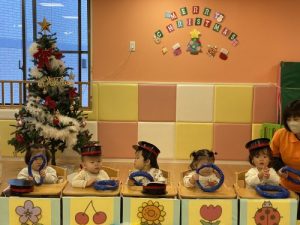鈴、カスタネットを持って『あわてんぼうのサンタクロース』を演奏🎶