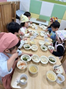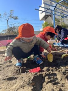 今まではクラスのお友だちと遊ぶ姿が多く見られていましたが、最近では他のクラスのお友だちとも遊ぶ子が増えてきました!!