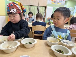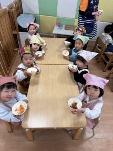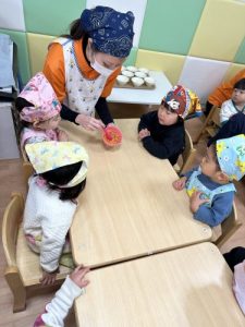 いちご組にもお裾分けをしてもらいました。みんなで食べるとさらに美味しくなるね