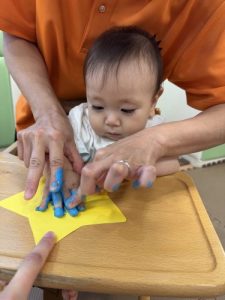 もも組さんはお星様の中に手型を押しました🖐🏻
