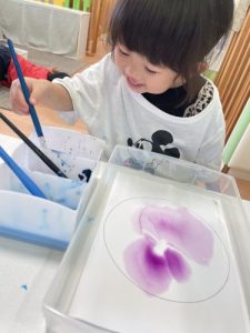 りんご組さんはにじみ絵を楽しみます🎨