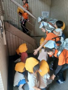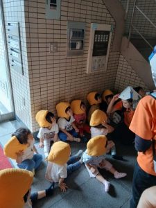 そして、今回の避難訓練ではビルの2階に逃げるという