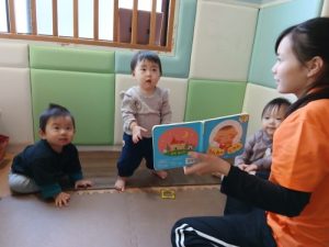 「これ読んで〜」と保育者の周りには