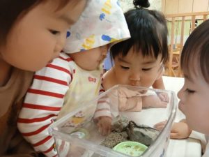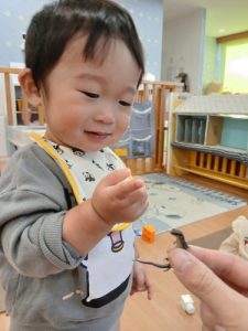 怖がらずに手を伸ばしていてすごいね✨