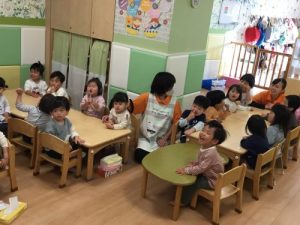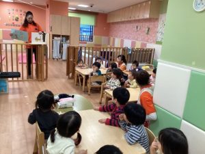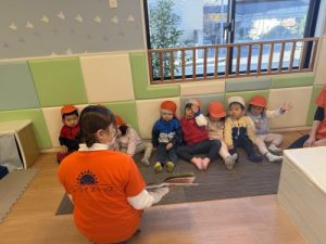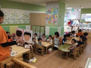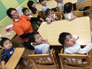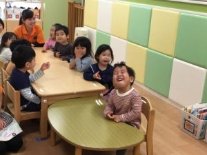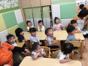 子ども達もお友達や保育者の顔を見て大笑い🤣