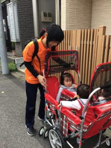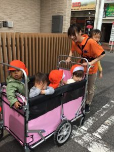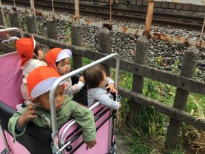 散歩バギーに乗って皆電車を見たりお花を見たりとお散歩を満喫していました?