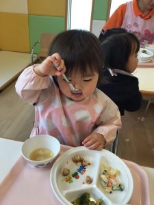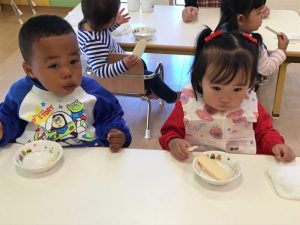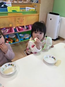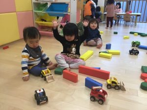 いちご組さんは車やブロック遊びで沢山遊び給食やおやつをとても美味しそうに食べています?