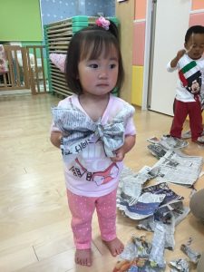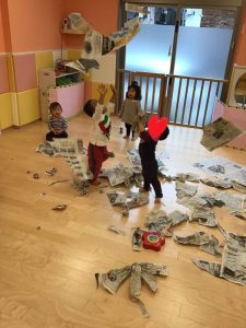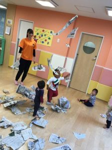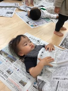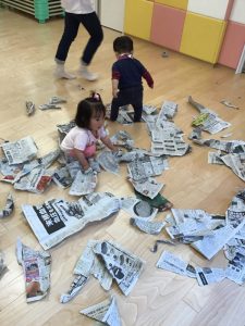 新聞紙の感触や音を満足いくまで楽しむことができました!