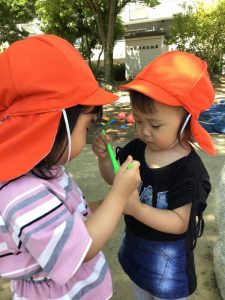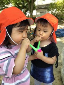 初めはシャボン玉を作ることが難しそうだったりんご組さん!